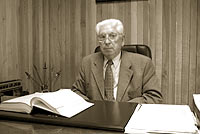 Este hombre va de la mano con el siglo, se adapta fácilmente a los cambios, y nos puede hacer retrotraernos a tiempos pasados, incluso no vividos, las palabras no tienen tiempo ni horario; gracias a que el espacio de su oficina tiene la marca de los años, sillones viejos, fotografías antiguas, libros, papeles por doquier.