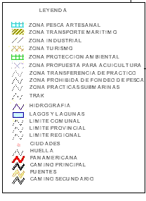 La propuesta preliminar de borde costero considera areas de pesca artesanal, transporte marítimo, zonas industriales, sectores destinados a turismo. Junto con lugares para acuicultura, transferencia de practico, areas prohibidas de fondeos de pesca, sectores para pesca submarina y track. Ademas de zonas de protección ambiental resguardadas exclusivamente contra daños ecológicos y contaminación.