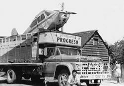Avión es traslado a desde Castro a Santiago a reparación, vía terrestre, en la antigua empresa "Transportes Progreso" 1963