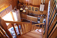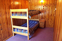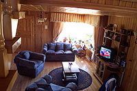 • Cabaña 1: tiene una capacidad para 6 personas y está completamente equipada. Tiene 3 dormitorios, 2 baños y un estar con 2 camas nido. Lavadora, refrigerador, cocina a gas, estufa combustión lenta a leña, calefont, 2 pisos, TV con DIRECTV, equipo de música, bar completo